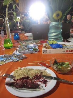 En dan tijd om wat te gaan eten. Geweldig goed verzorgde catering, koude drankje en mmm overal vers fruit. Bijkomen in rust en koelte.